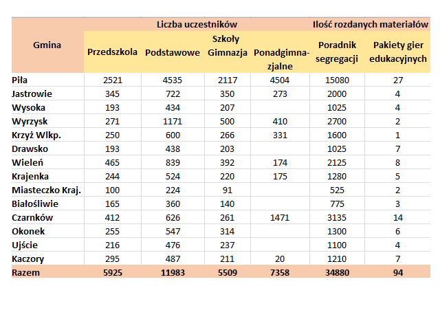 Związek ze swoimi prelekcjami z zakresu segregacji odpadów, recyklingu, ograniczania odpadów w życiu codziennym trafił do wszystkich, blisko 200 placówek oświatowych. - Budującym jest fakt, że przedszkolaki a także uczniowie wszystkich poziomów szkół, bardzo chętnie i aktywnie uczestniczą w prelekcjach – mówi Romuald Burczyk z Business Communication Group. Z ich relacji wiemy też, że dla nich segregacja nie jest niczym trudnym a swoją wiedzą dzielą się z rodzicami. I o to właśnie chodzi, aby poprzez dzieci docierać też do dorosłych mieszkańców.
