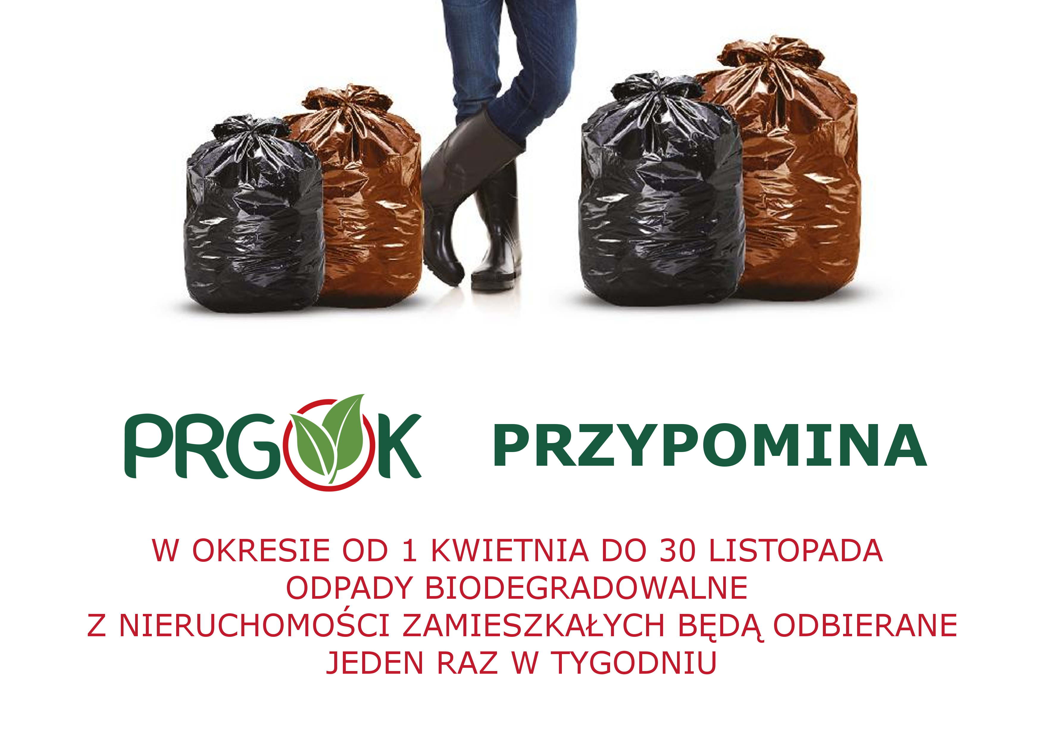 Szanowni Państwo, przypominamy, że w okresie od 1 kwietnia do 30 listopada odpady biodegradowalne z nieruchomości zamieszkałych odbierane są jeden raz w tygodniu.