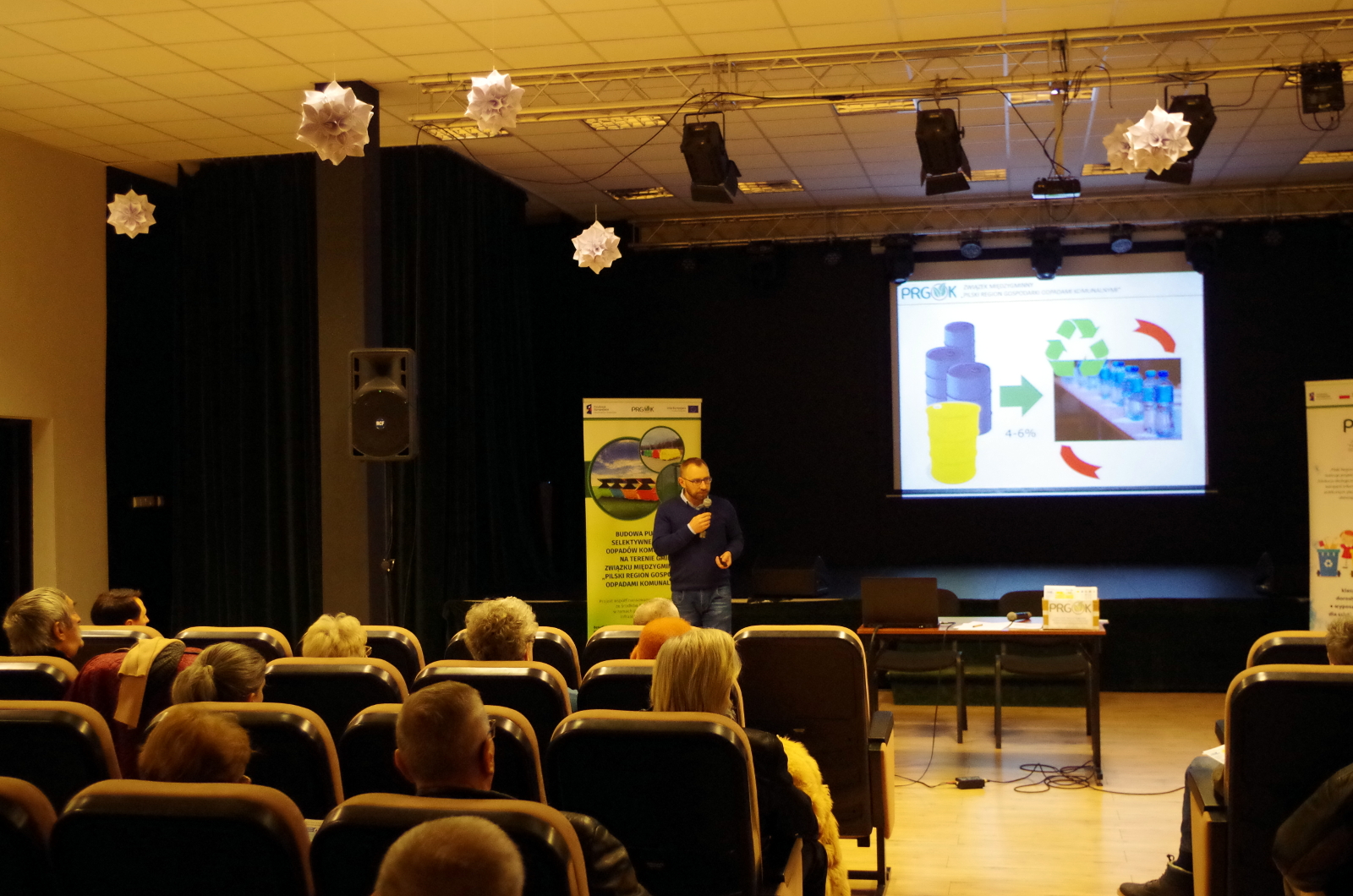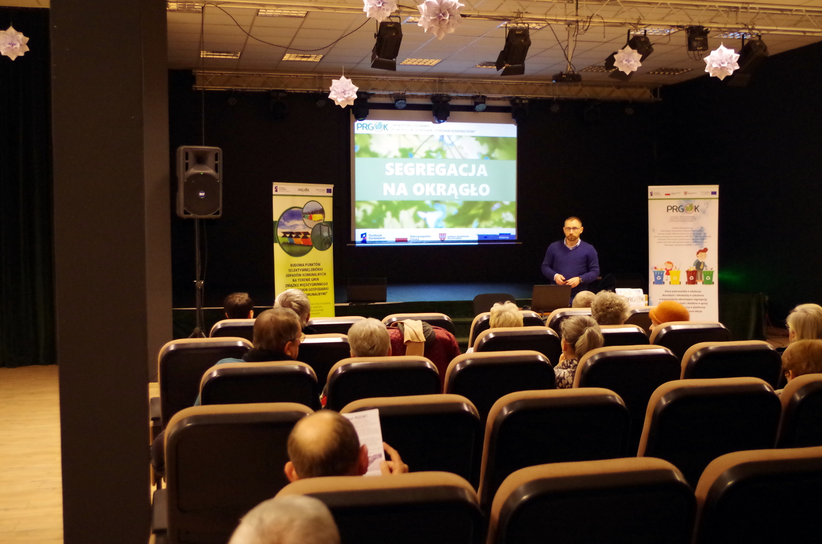 W ramach realizowanego projektu odbyliśmy spotkanie z mieszkańcami gminy Okonek. Na nim przybliżyliśmy obecnym zasady segregacji odpadów komunalnych, wymogi, które musimy spełnić, czyli poziomy odzysku i recyklingu. Spotkanie było także dobrą okazją, aby popdowiedzieć uczestnikom w jaki sposób mogą na co dzień przyczynić się do zredukowania ilości odpadów.